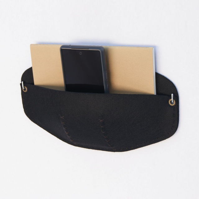 Les vide-poches muraux en feutre Hyphens ont été imaginés pour s'intégrer en premier lieu dans les petits espaces. En se juxtaposant les uns aux autres, ils proposent un maximum de rangement sur une surface réduites ainsi optimisée.